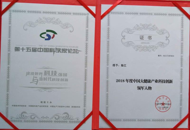 陸江榮獲醫藥行業影響人物證書
